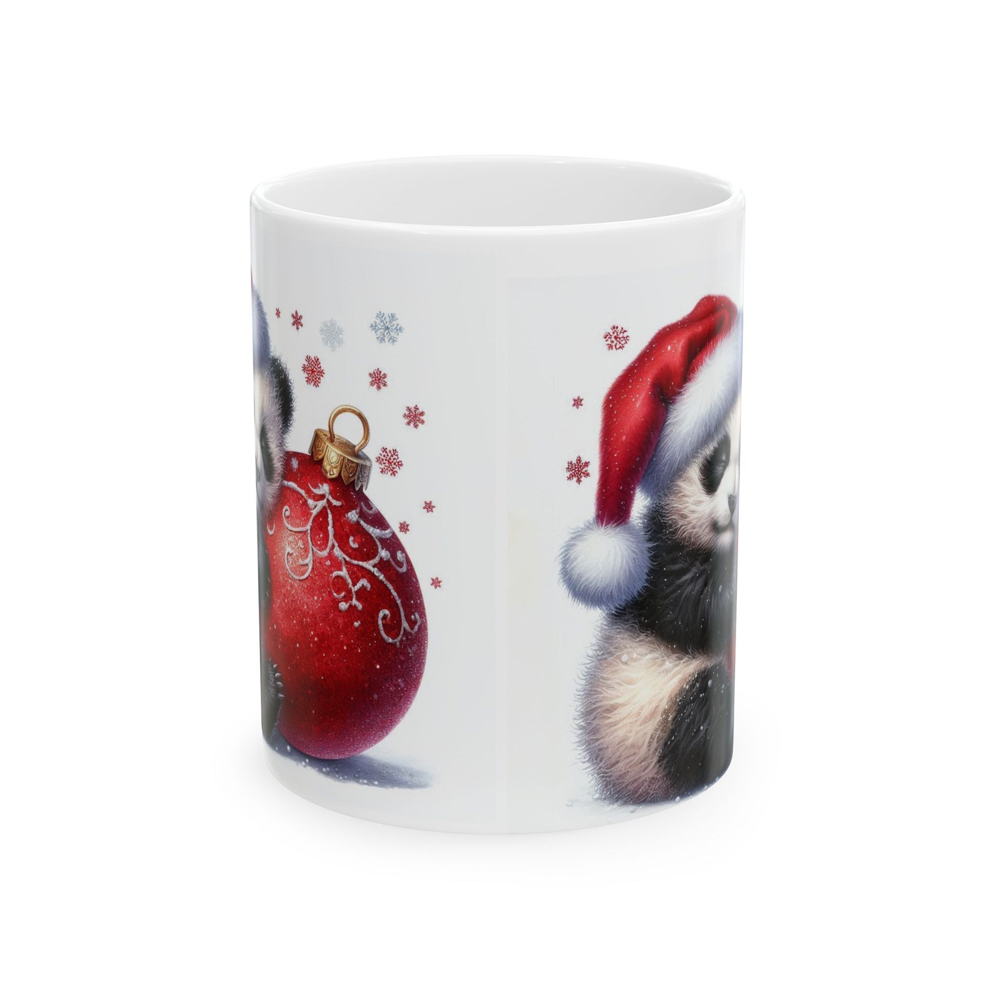 Cute Panda Christmas Mug — Holiday Santa Hat & Ornament Ceramic Coffee Cup (11oz, 15oz)