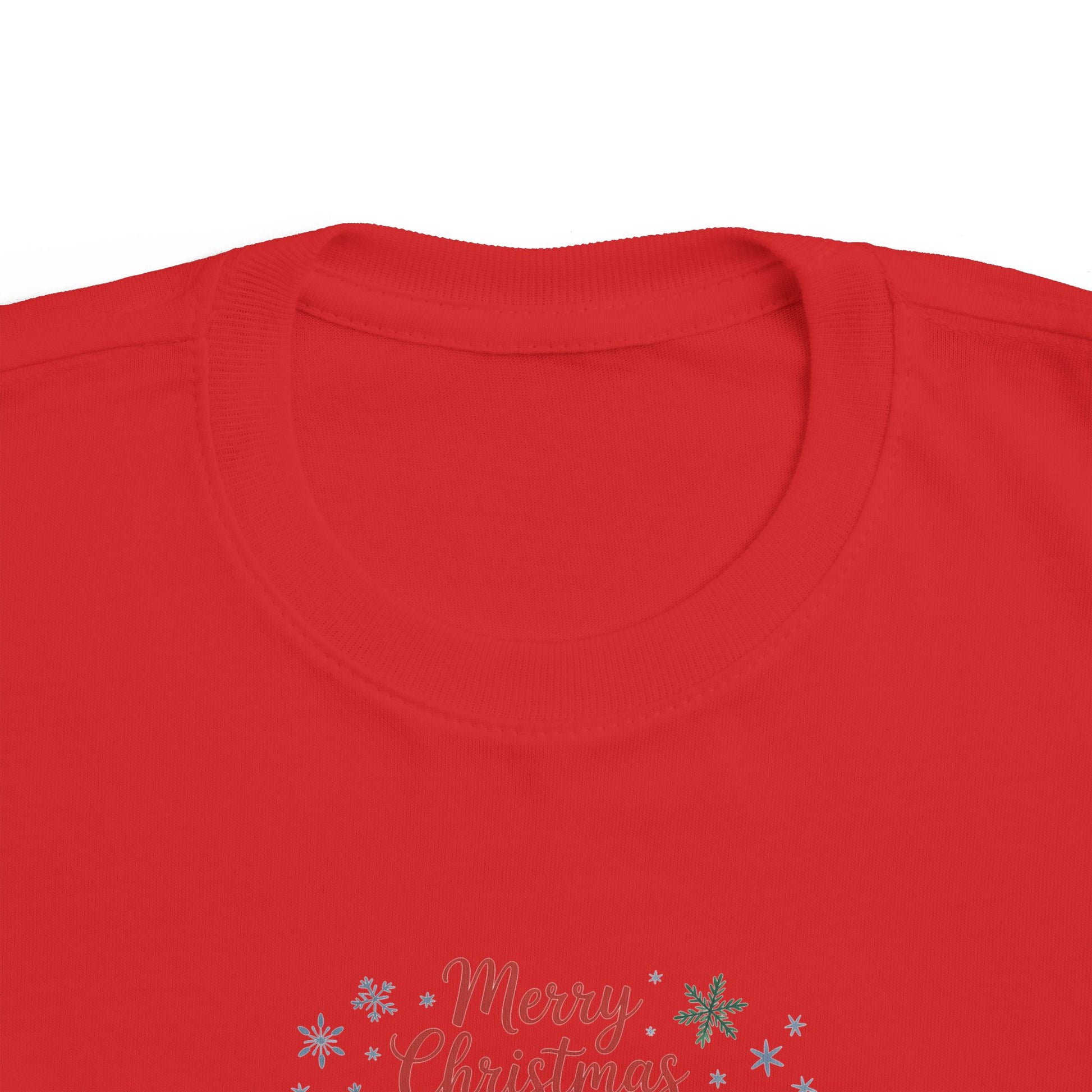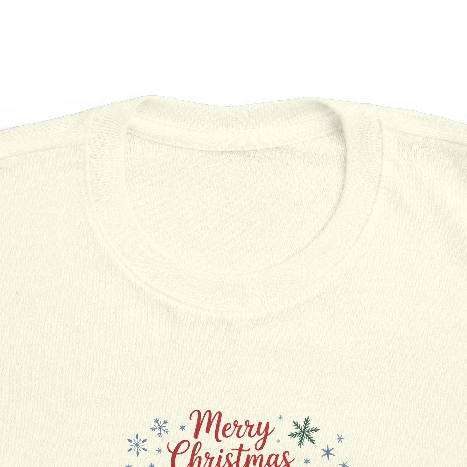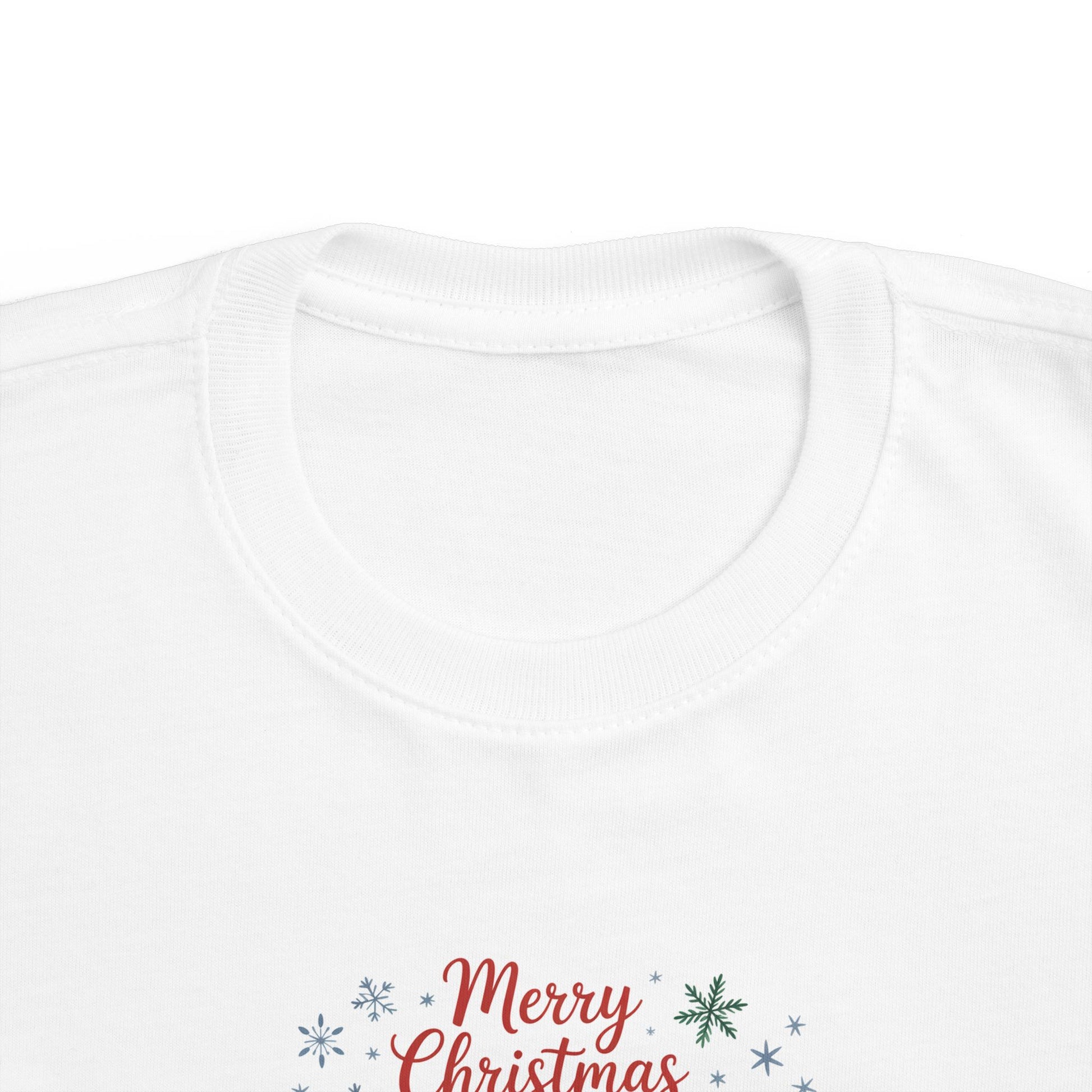 A soft, light-weight toddler tee printed with a whimsical Christmas scene — three cozy animals in holiday hats and scarves, framed by gentle snowflakes and the cheerful ‘Merry Christmas’ script. The breathable combed cotton feels smooth against little skin while the ribbed collar, shoulder tape, and side seams keep shape after washes. It’s an easy everyday layer that brings seasonal charm to playdates, family photos, and holiday visits, fitting true to size and sporting a tear-away label for extra comfort.