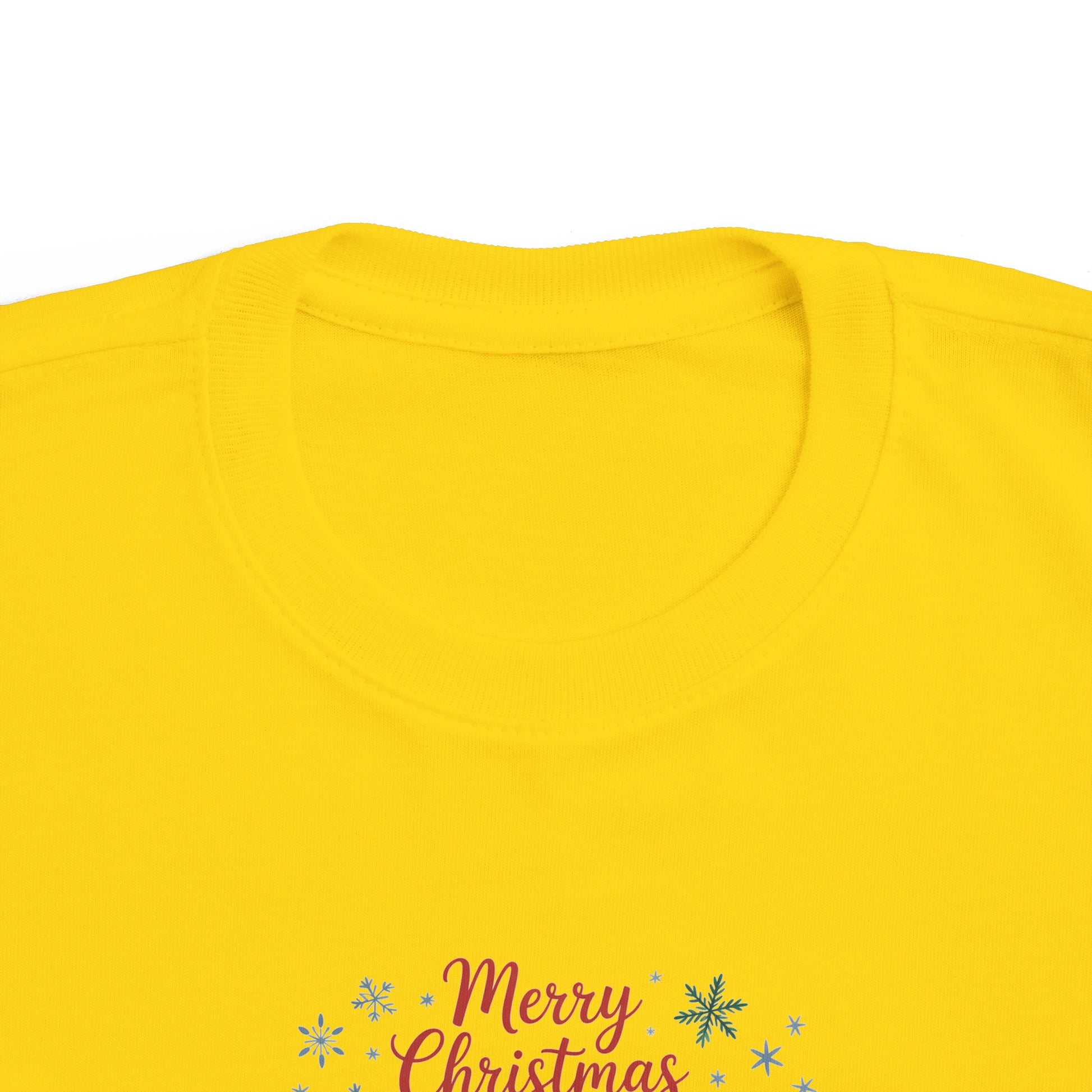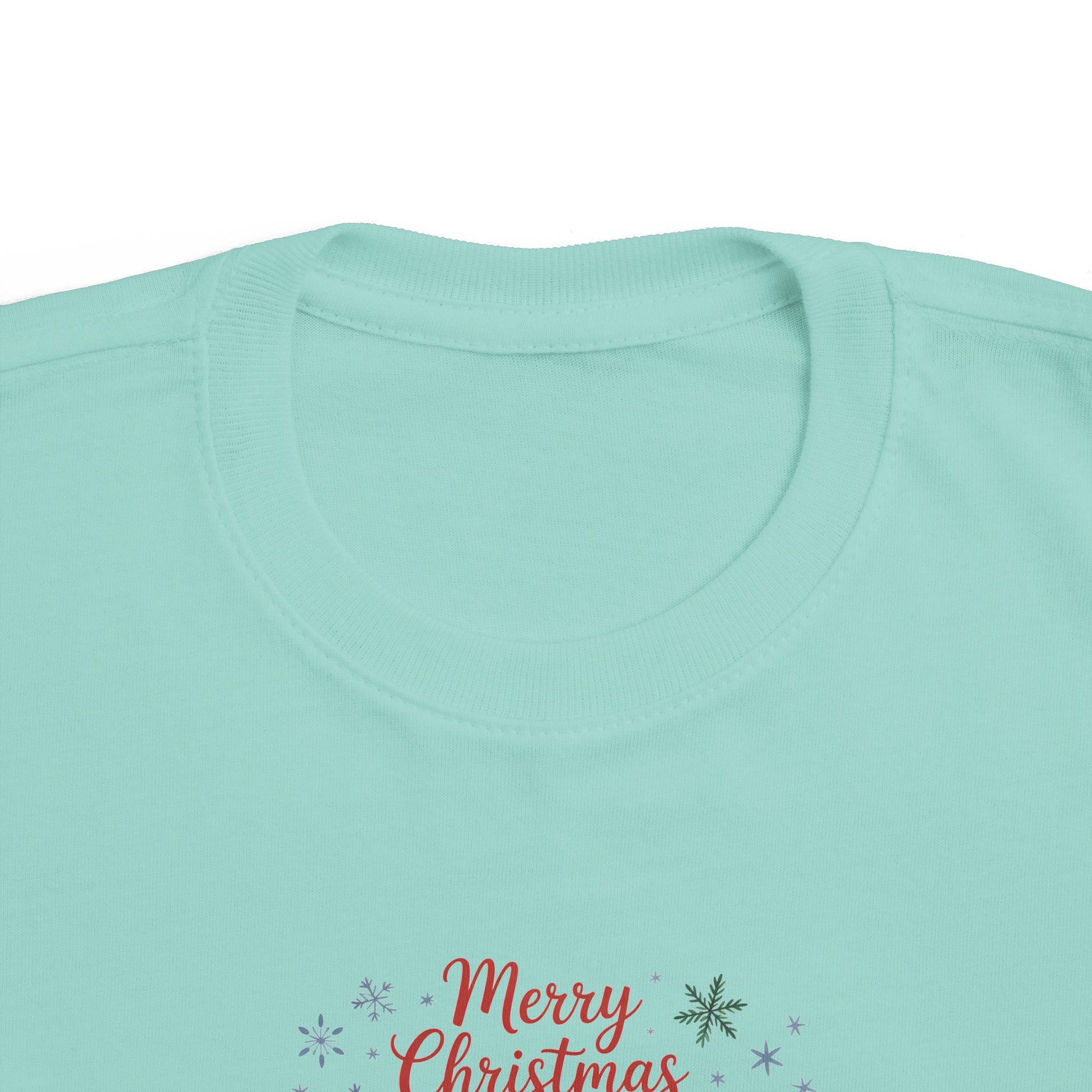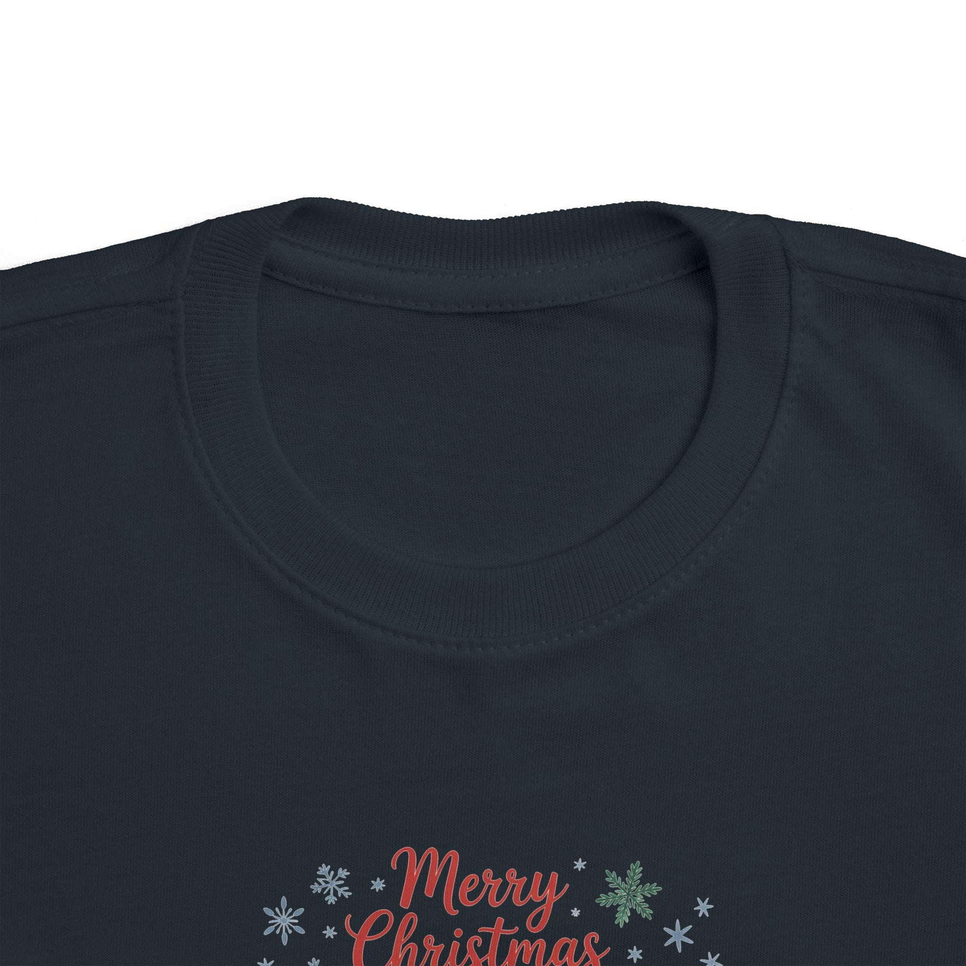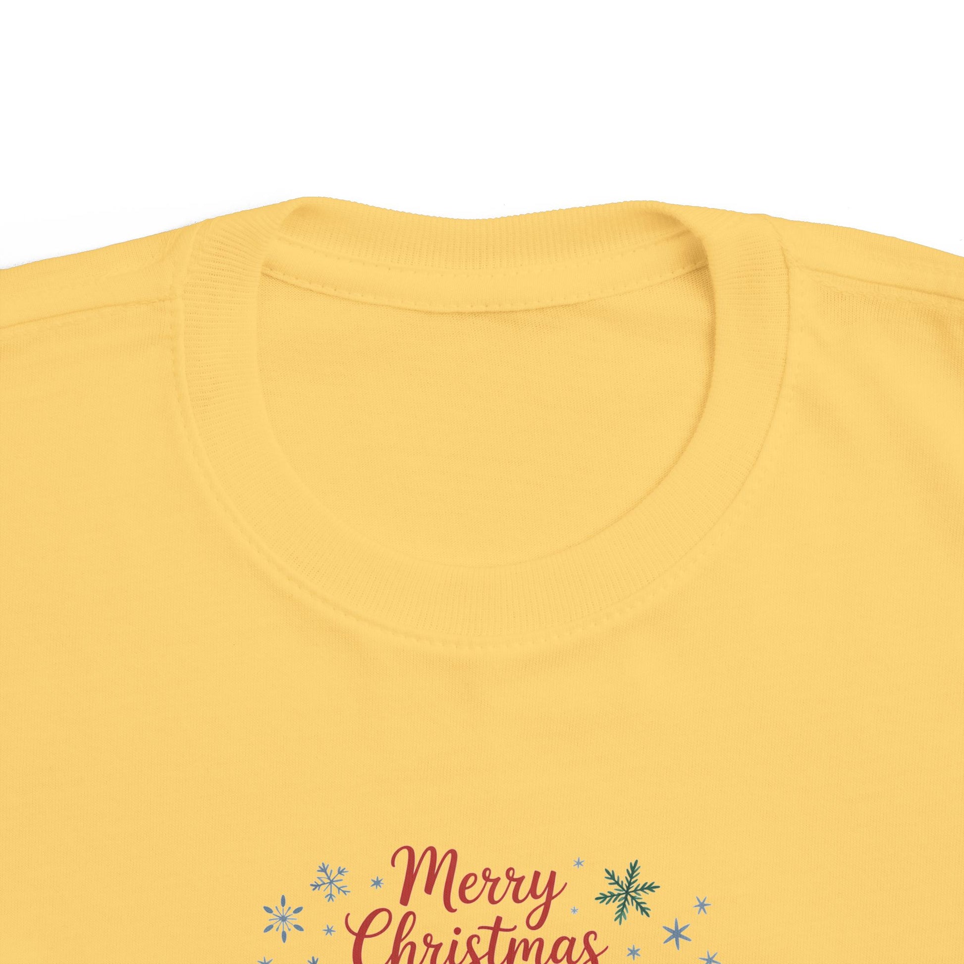 A soft, light-weight toddler tee printed with a whimsical Christmas scene — three cozy animals in holiday hats and scarves, framed by gentle snowflakes and the cheerful ‘Merry Christmas’ script. The breathable combed cotton feels smooth against little skin while the ribbed collar, shoulder tape, and side seams keep shape after washes. It’s an easy everyday layer that brings seasonal charm to playdates, family photos, and holiday visits, fitting true to size and sporting a tear-away label for extra comfort.